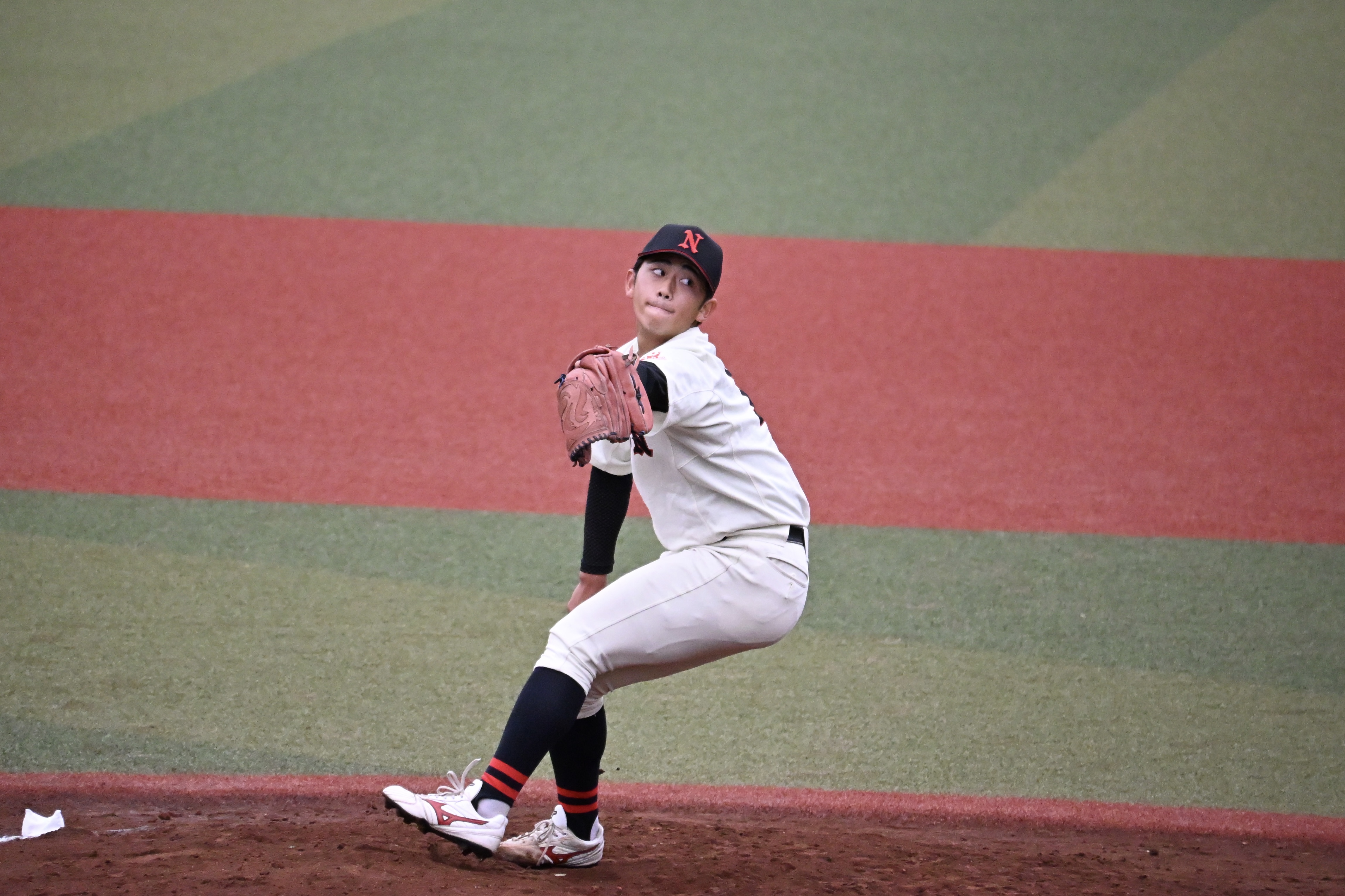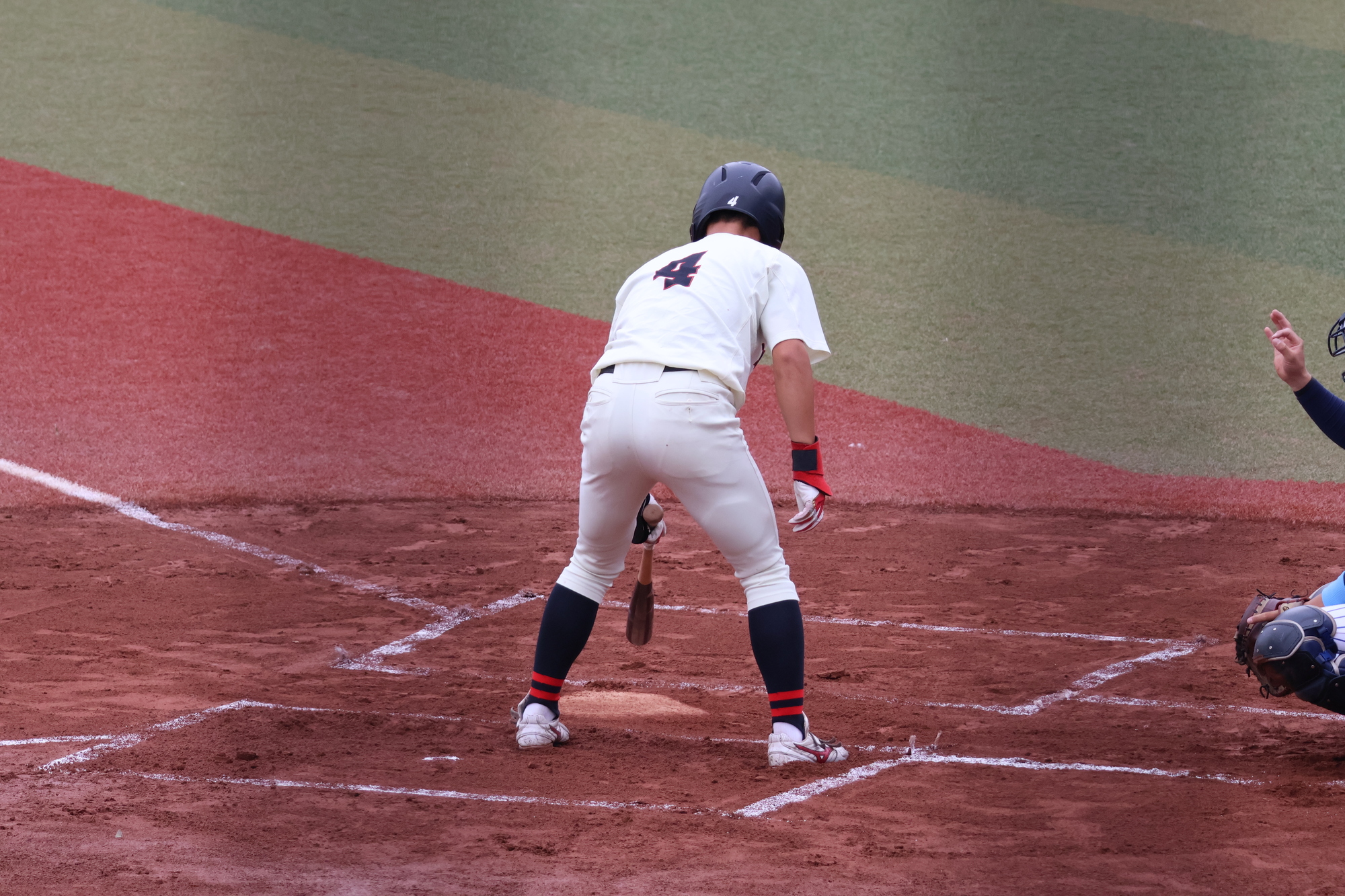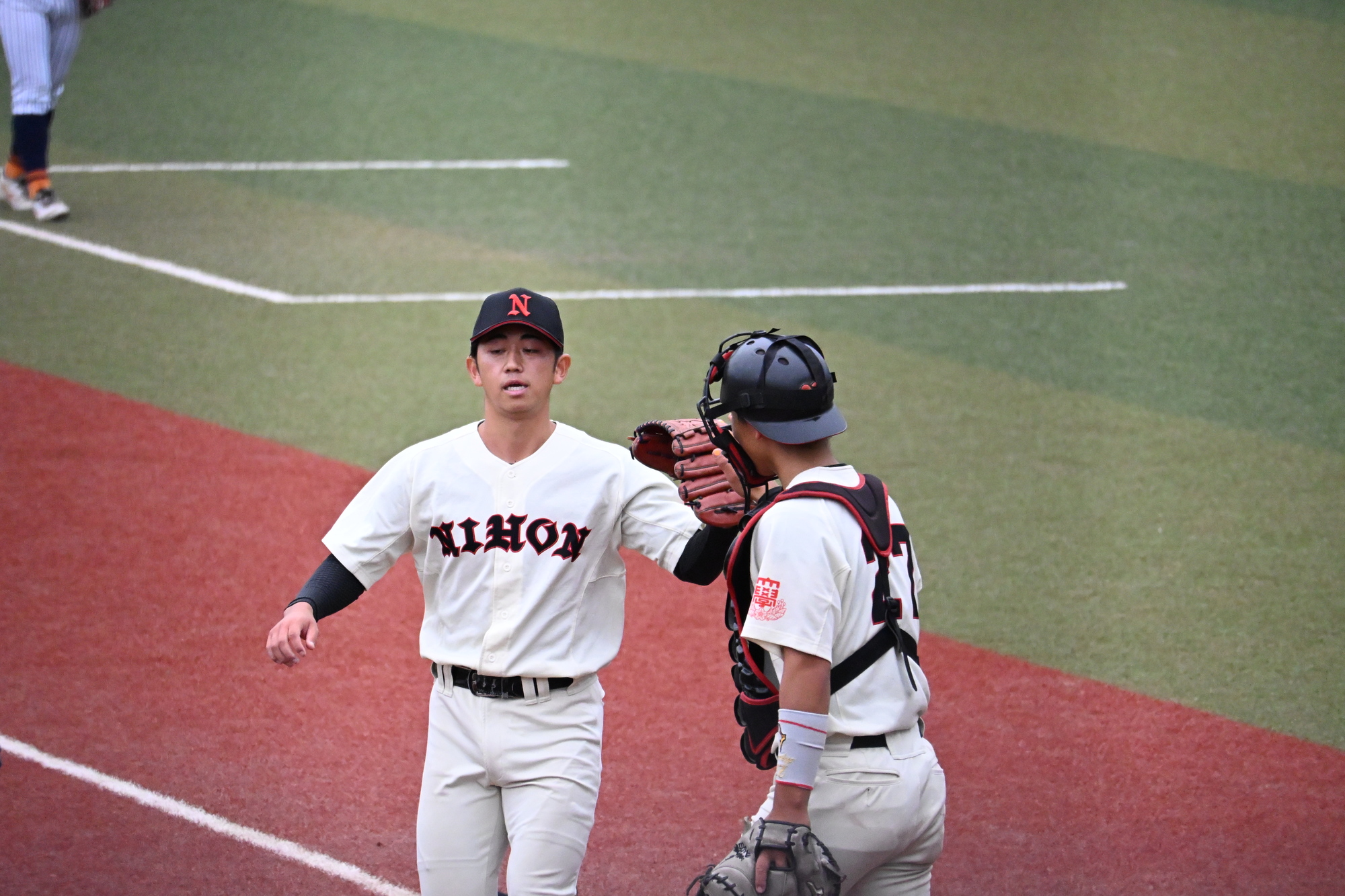 7回表、追加点がほしい本学でしたが、三者凡退に終わります、、