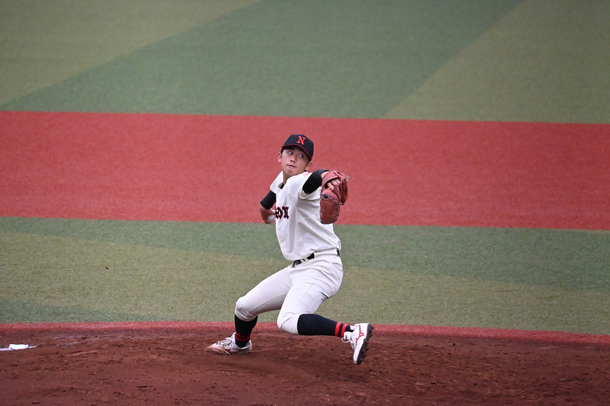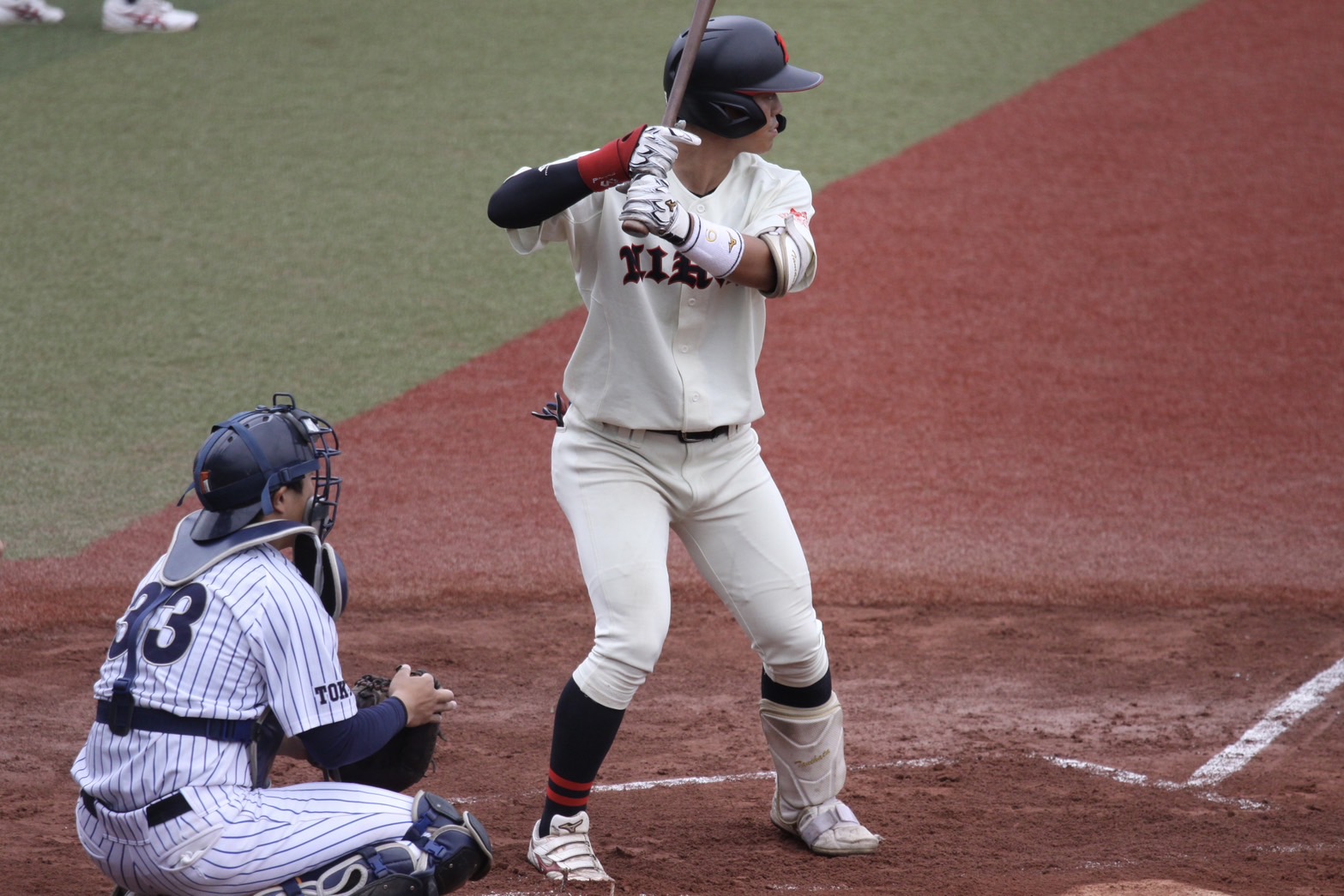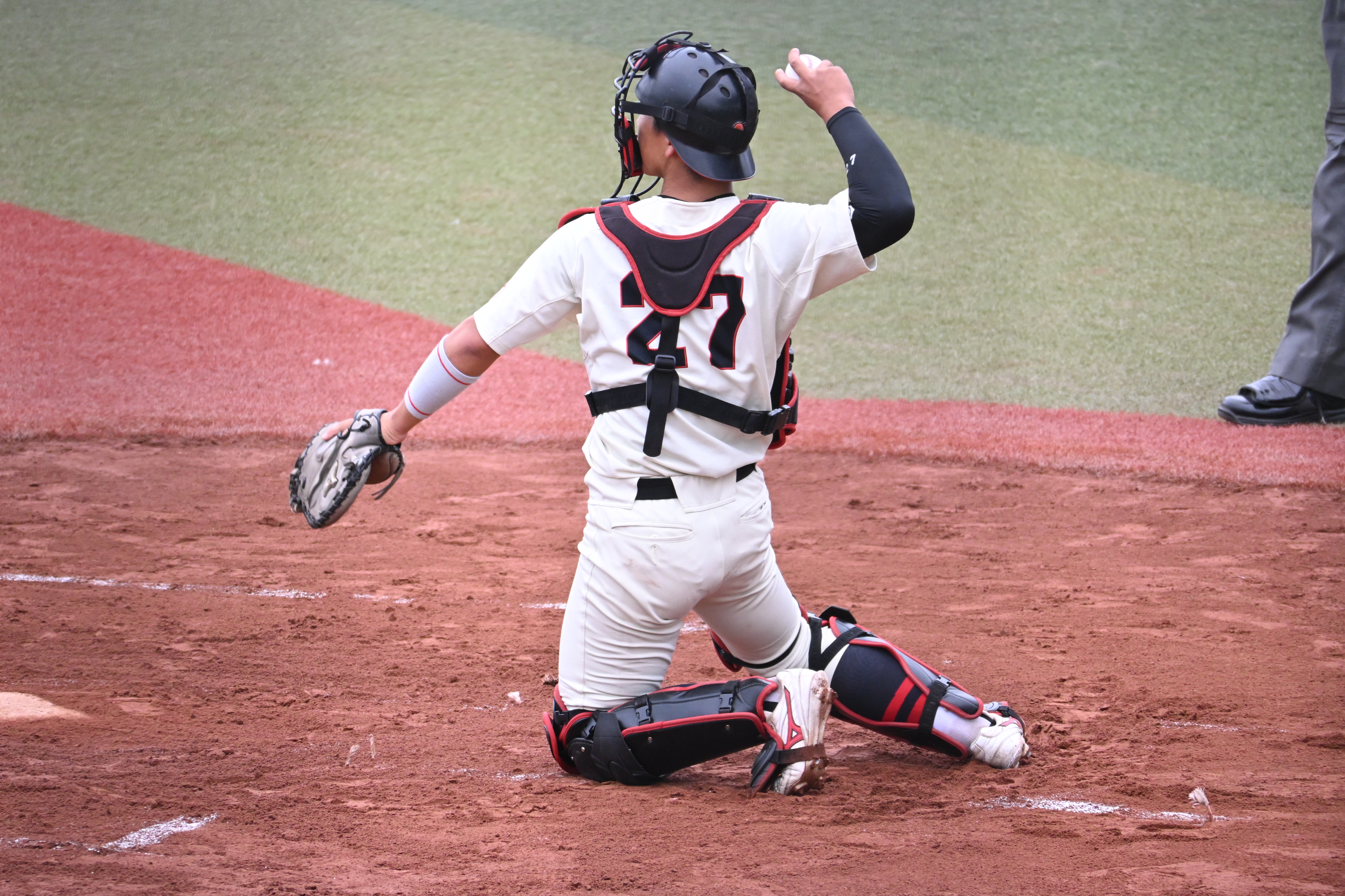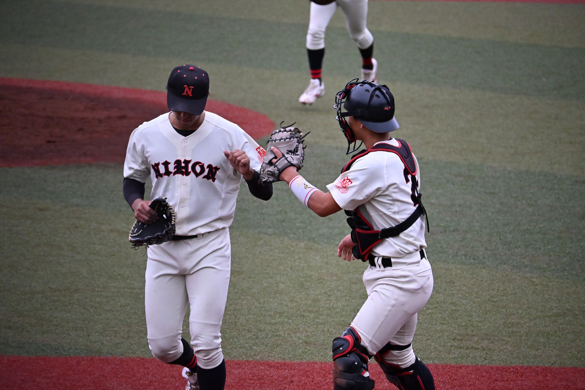 7回表、追加点がほしい本学でしたが、三者凡退に終わります、、
