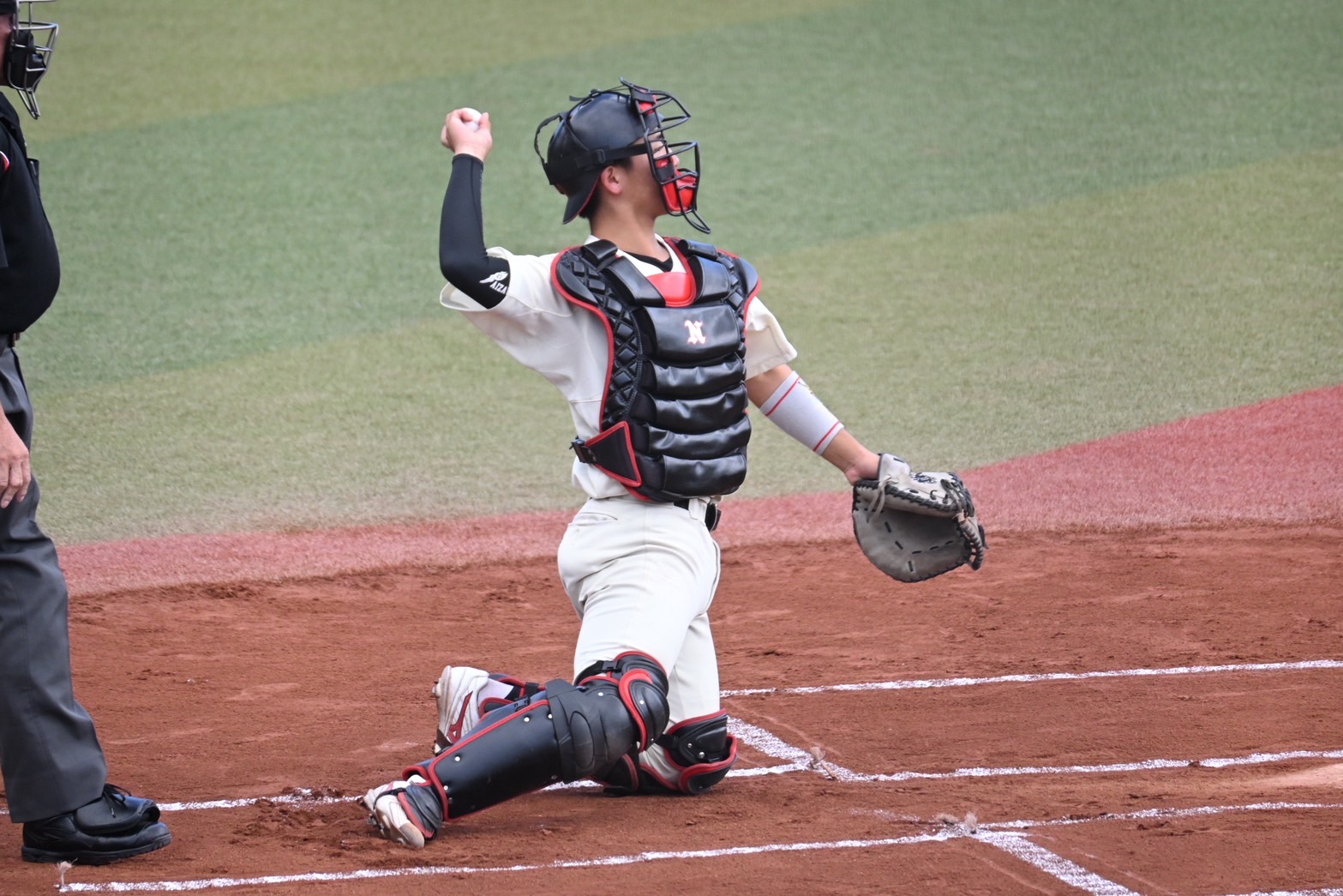 9回表、 ピッチャーは生方から西尾にバトンが渡ります!