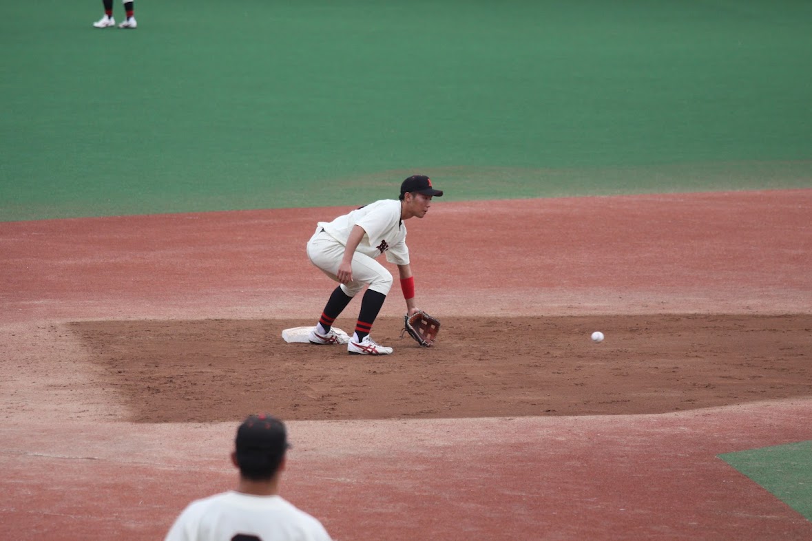 6番打者の打球はセカンド菊地のもとへ!!!!菊地の完璧なグラブ捌きにより、アウトを獲得!!