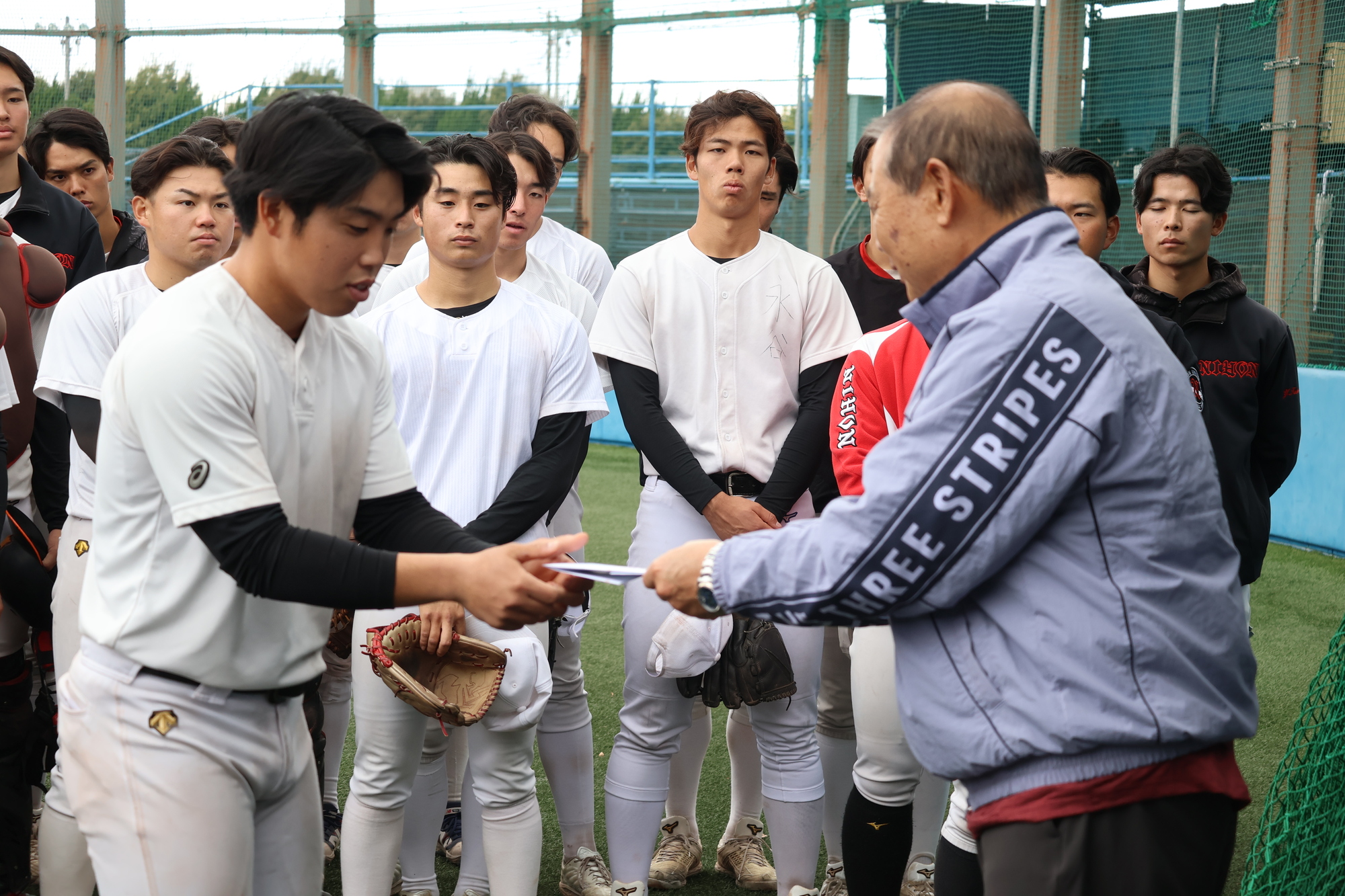本日、桜門球友クラブ会長 仲村 恒一様が日本大学(実籾)グラウンドへお越しくださり、新チームに向けての激励のお言葉をいただきました。